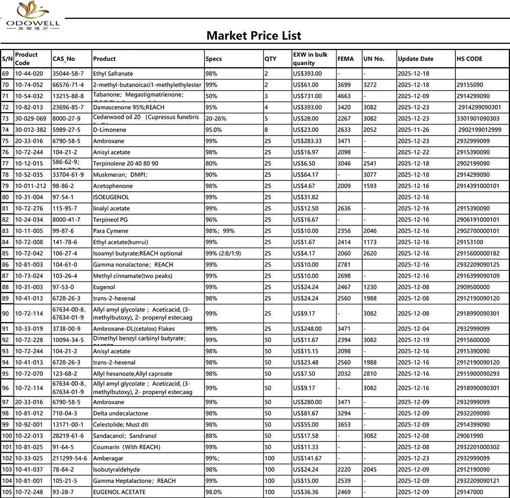 Alilo cikloheksilo propionatas – ODOWELL ananasų esteris, skirtas ryškiems, ilgai išliekantiems vaisių kvapams
